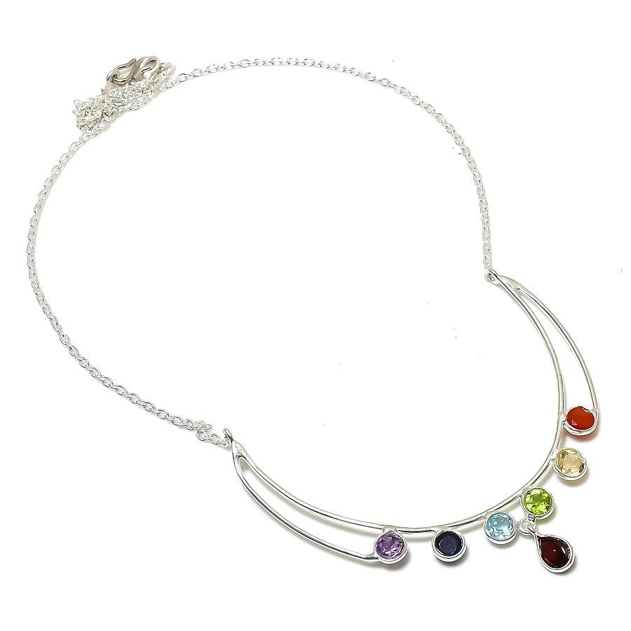 Natural Garnet Seven Chakra Solid Silver Anniversary Elegant Wife Chain Necklace