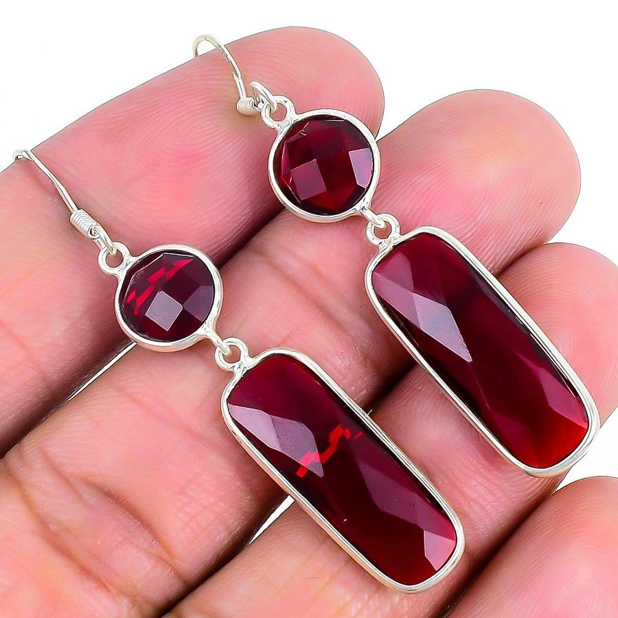 Natural Garnet treated 925 Solid Silver Engagement Unique Dangling Hook Earrings