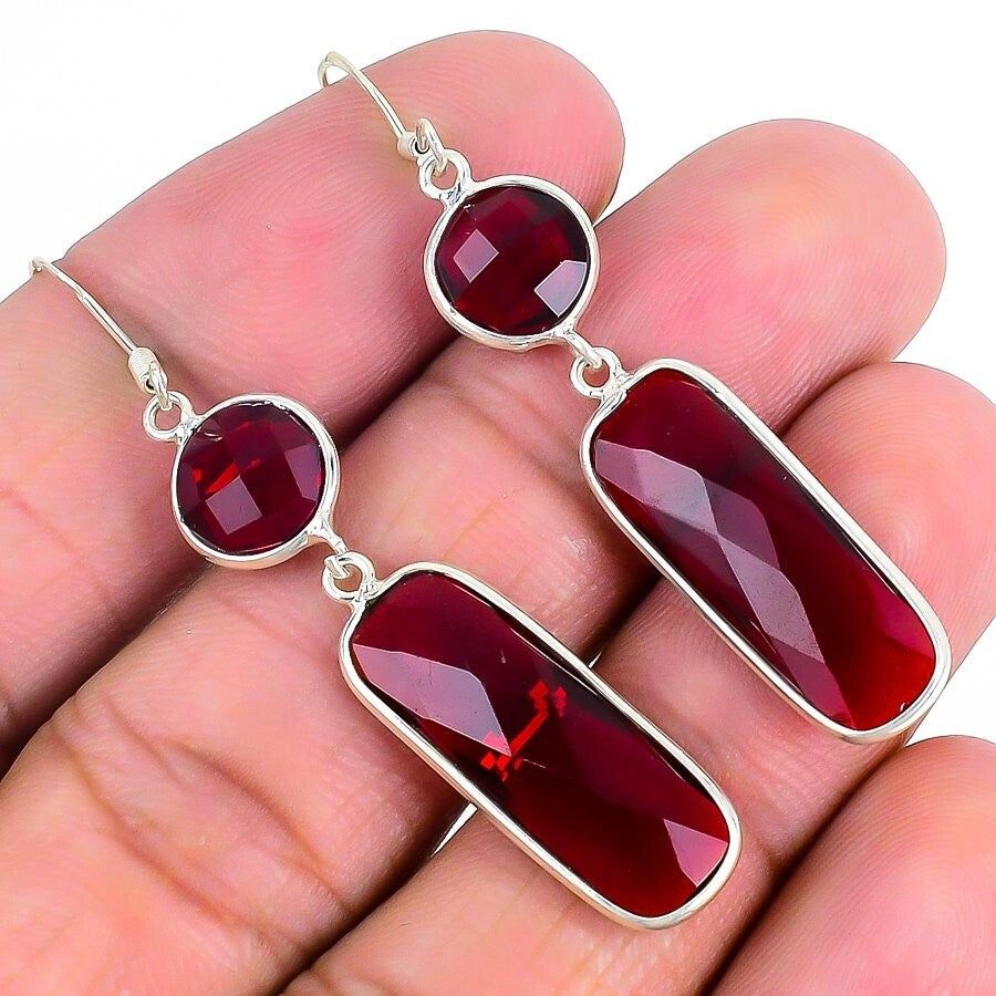 Natural Garnet Treated Sterling Silver Artisan Drop Wedding Hook Unique Earrings