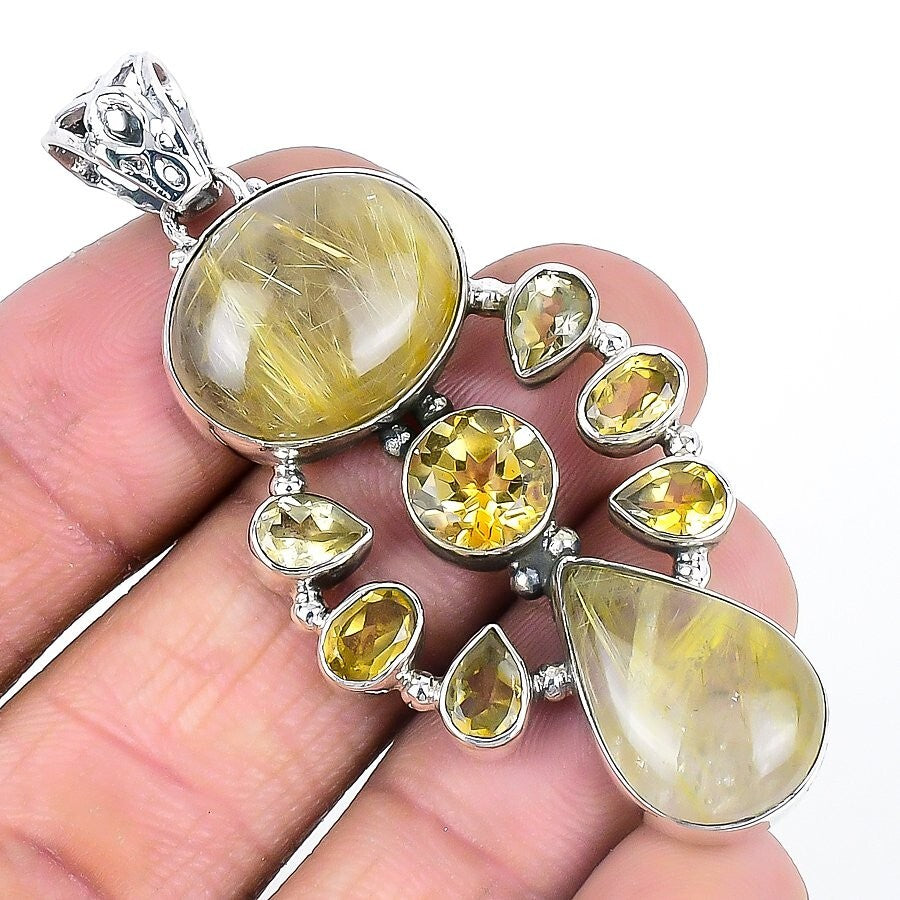 Natural Golden Rutile 925 Silver Birthday Easter Gift Daughter Art Deco Pendant