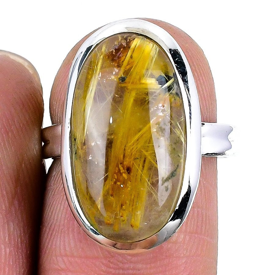 Natural Golden Rutile 925 Silver Birthday Statement Sister Ring Jewelry Size 6.5