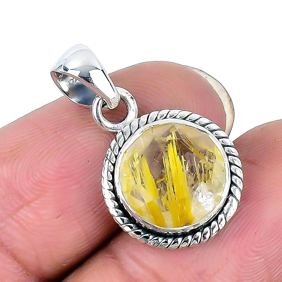 Natural Golden Rutile 925 Solid Silver Wedding Daughter Birthday Pendant Jewelry