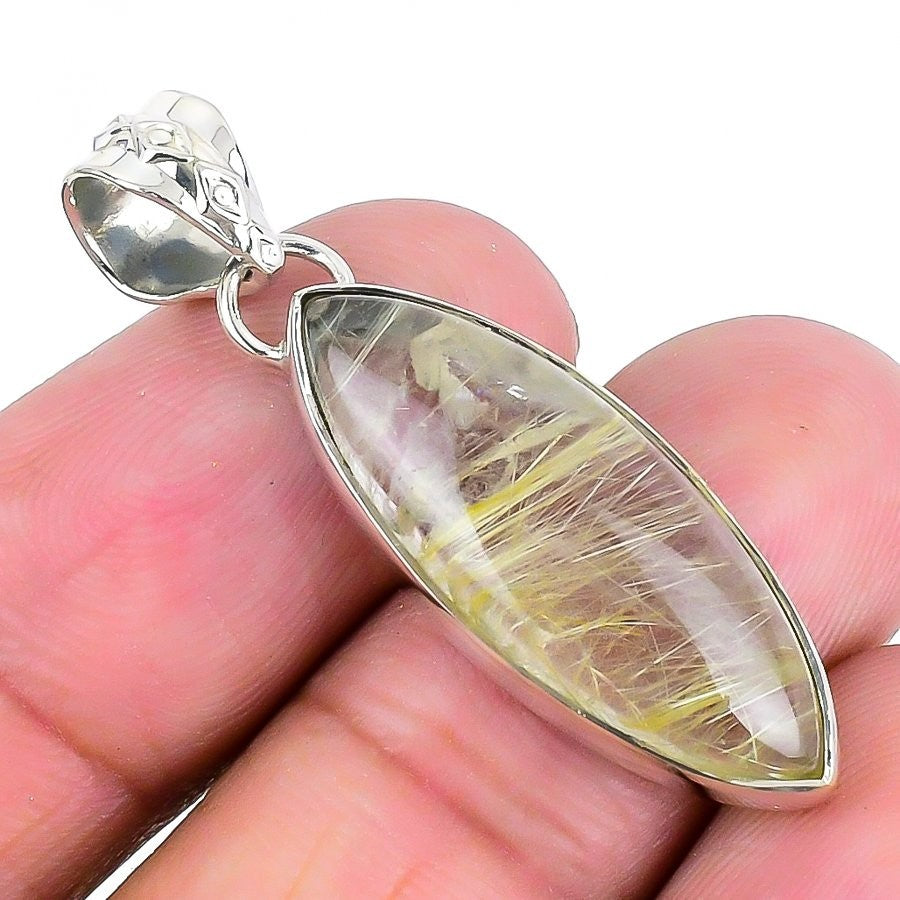 Natural Golden Rutile 925 Sterling Silver Ethnic Sister Friendship Day Pendant