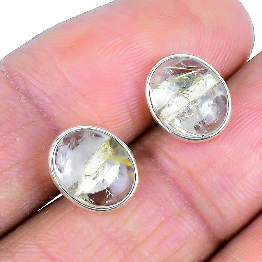 Natural Golden Rutile 925 Sterling Silver Mother Stud Handmade Earrings Jewelry