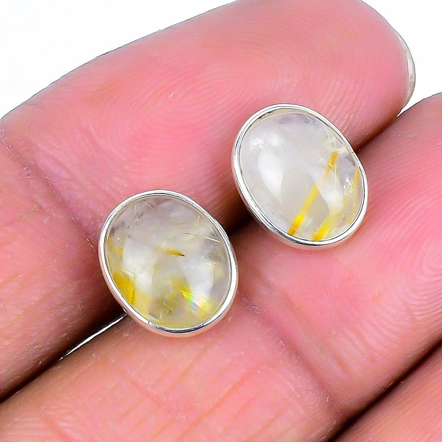 Elegant Natural Golden Rutile 925 Sterling Silver Stud in 92