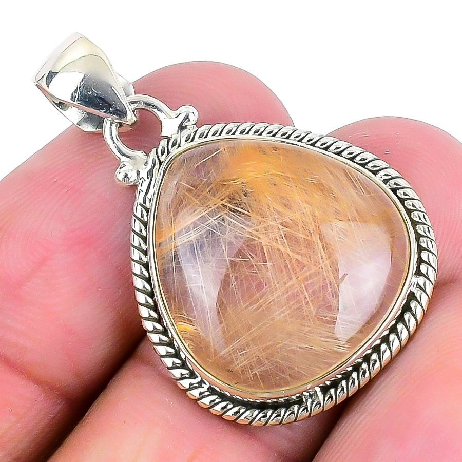 Natural Golden Rutile 925 Sterling Silver Trendy Daughters Day Pendant Jewelry