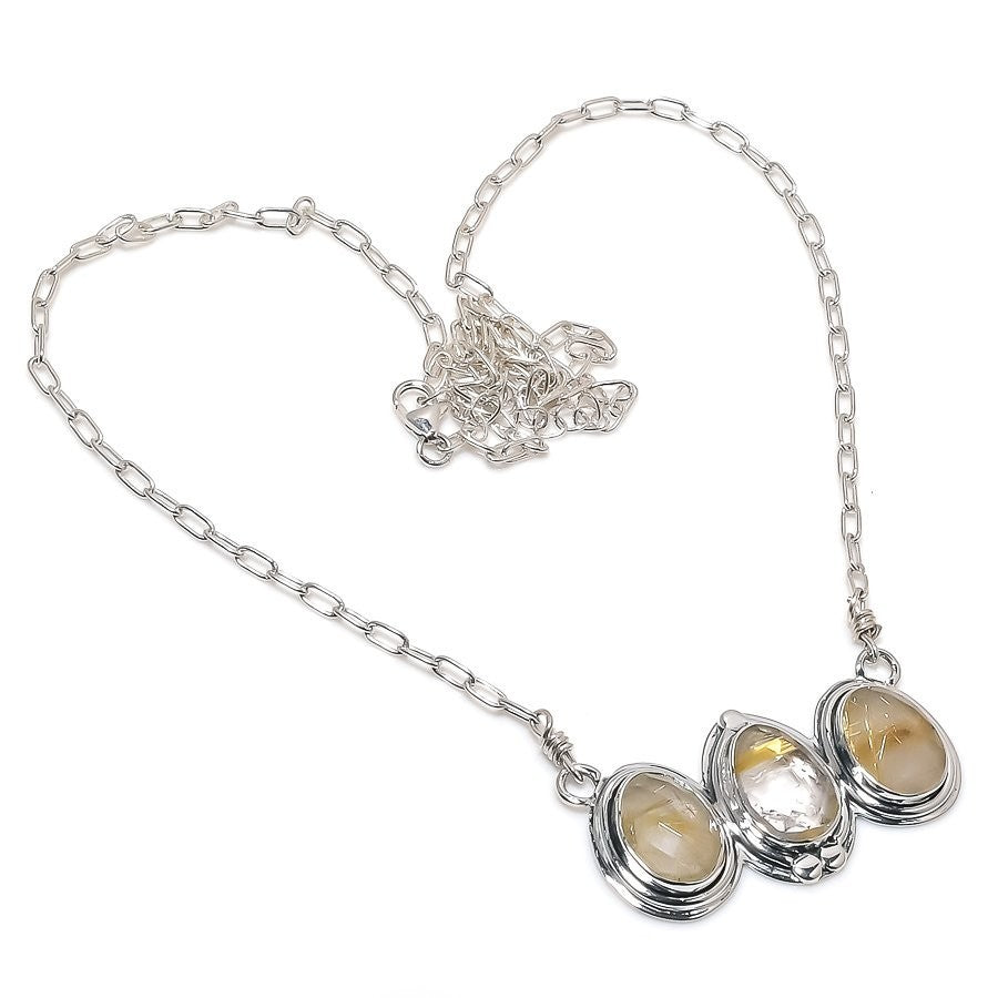 Natural Golden Rutile Daughter Friendship Day Chain Wedding Necklace 925 Silver