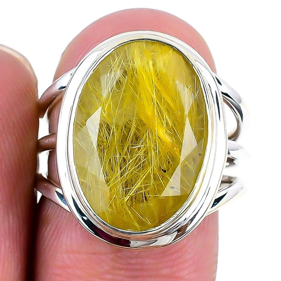 Natural Golden Rutile faceted 925 Silver New Statement Channel Set Ring Size 7.5