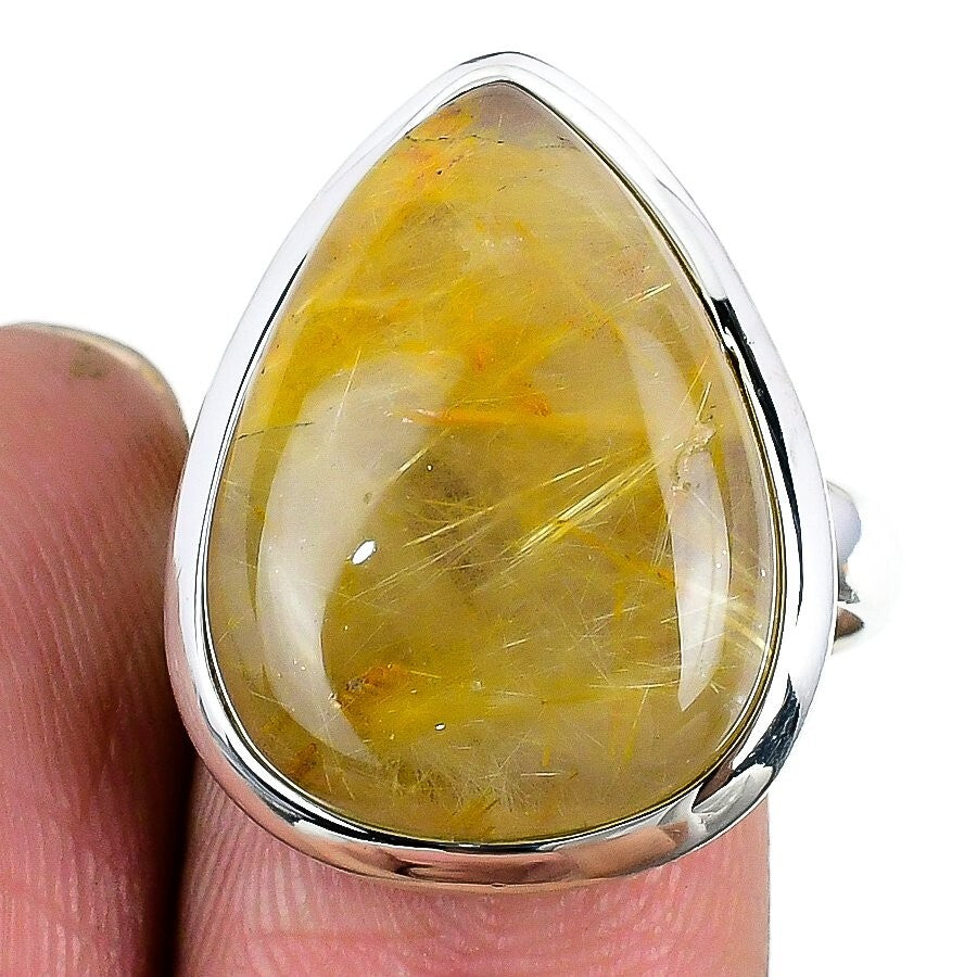 Natural Golden Rutile Statement Ethnic Wife Ring Jewelry 925 Solid Silver US 8.5