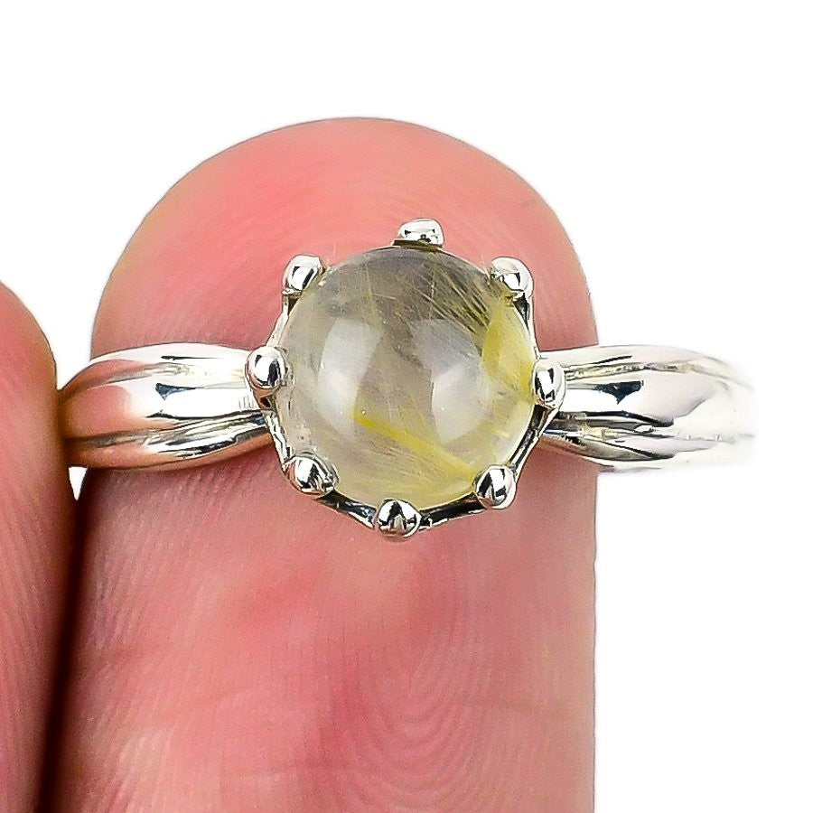 Natural Golden Rutile Trendy Statement Ring Jewelry 925 Sterling Silver US 10