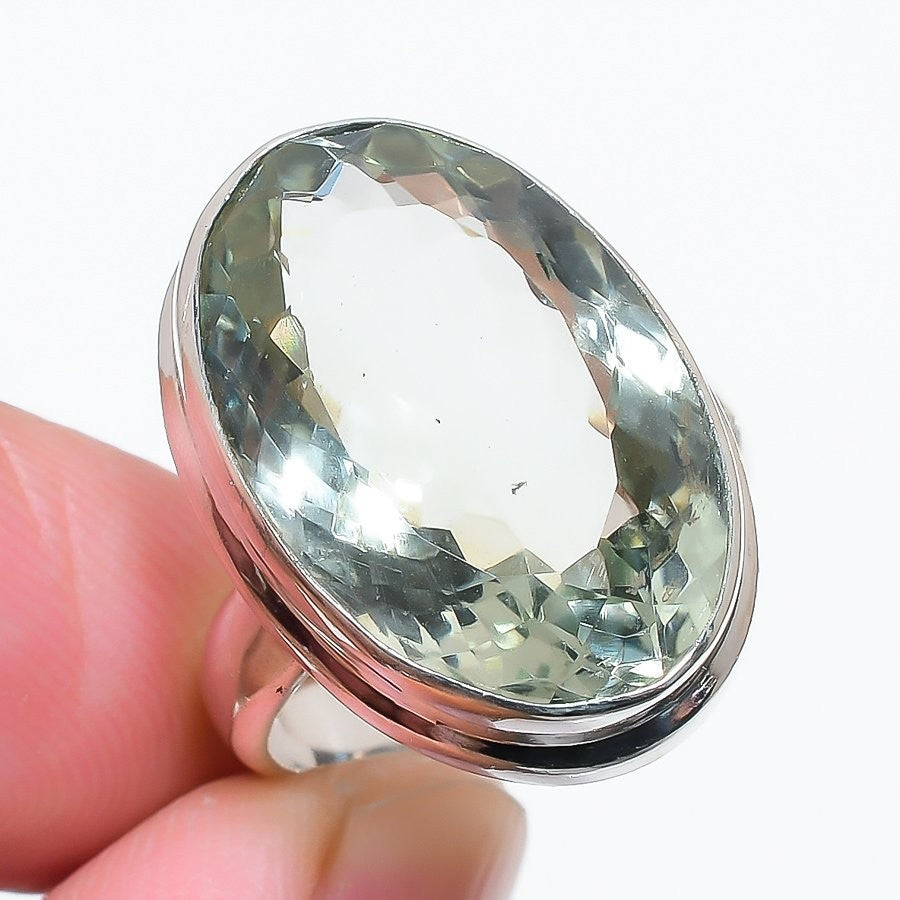Elegant Natural Green Amethyst 925 Silver Statement Handmade