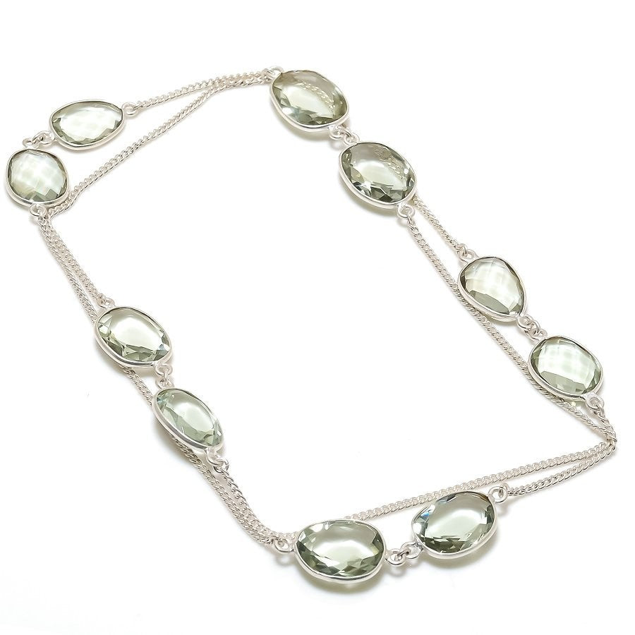 Natural Green Amethyst 925 Solid Silver Elegant Chain Unique Necklace Jewelry