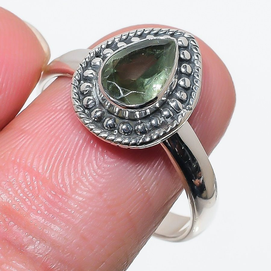 Natural Green Amethyst 925 Sterling Silver Cluster Birthday Artisan Ring Size 10