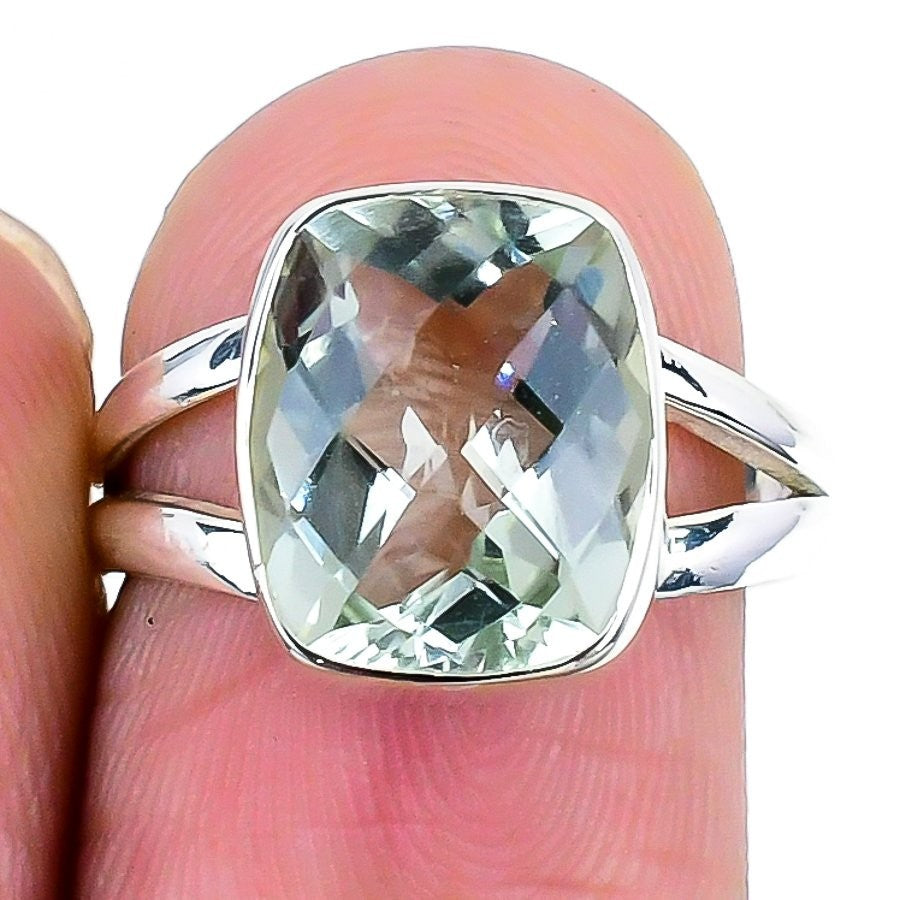 Natural Green Amethyst 925 Sterling Silver Statement Daughter Ring Jewelry US 7
