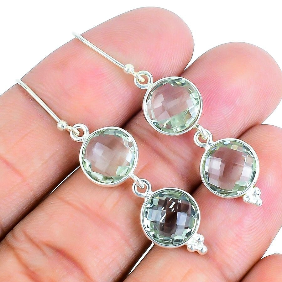 Natural Green Amethyst Drop Dangle Art Deco New Earrings Solid Sterling Silver