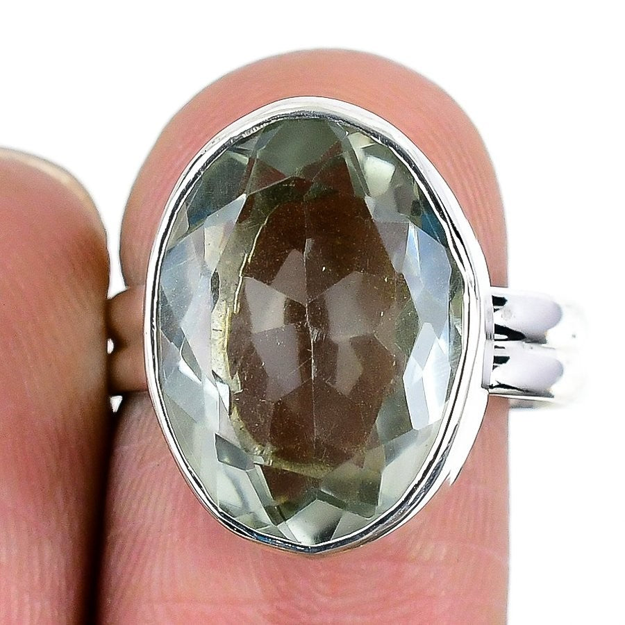 Natural Green Amethyst Solid Silver Statement Birthday Artisan Ring Jewelry US 9