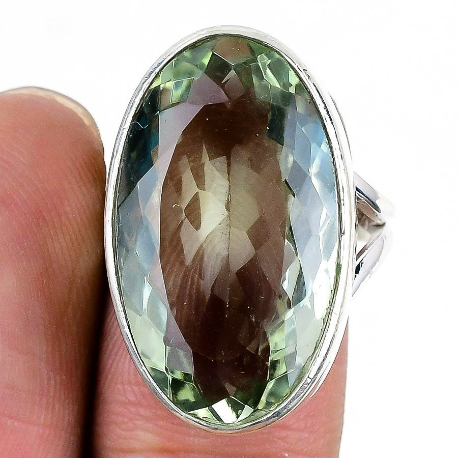 Natural Green Amethyst Solid Silver Statement Daughter Gift Ring Jewelry US 8