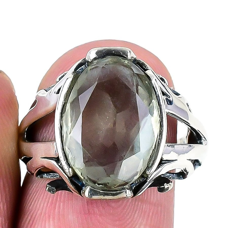 Natural Green Amethyst Solid Silver Statement Elegant Daughter Gift Ring Size 7