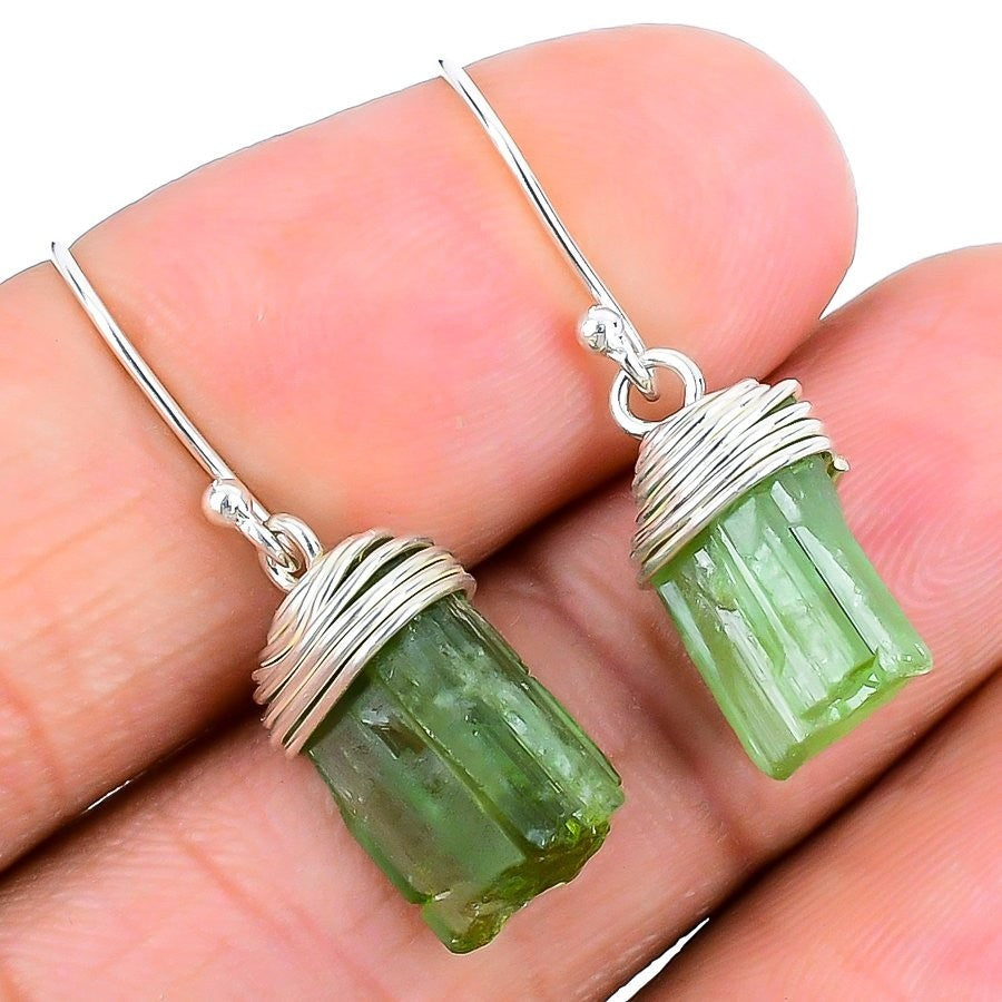 Elegant Natural Green Kyanite Sterling Silver Drop Dangle in