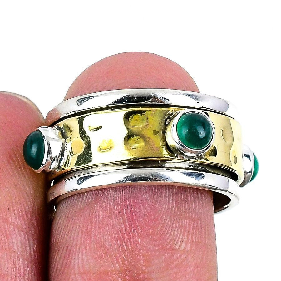 Natural Green Onyx 925 Silver Art Deco Statement Handcrafted Ring Jewelry US 7.5
