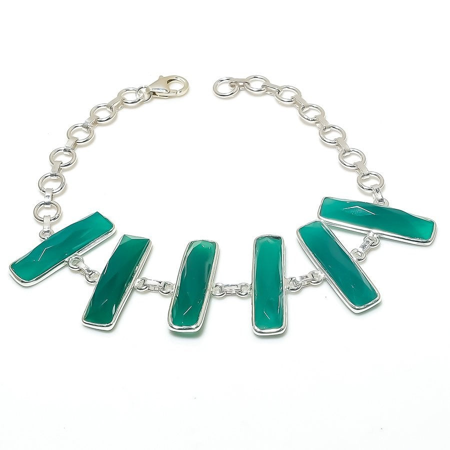 Natural Green Onyx 925 Solid Silver Engagement Chain Wedding Necklace Jewelry