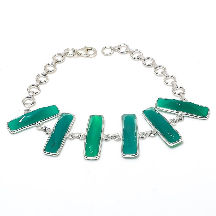 Natural Green Onyx 925 Solid Silver Sister Chain Friend Gift Wedding Necklace