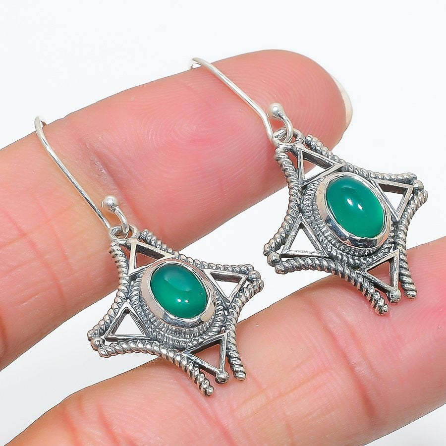Elegant Natural Green Onyx 925 Sterling Silver Dangle in 925