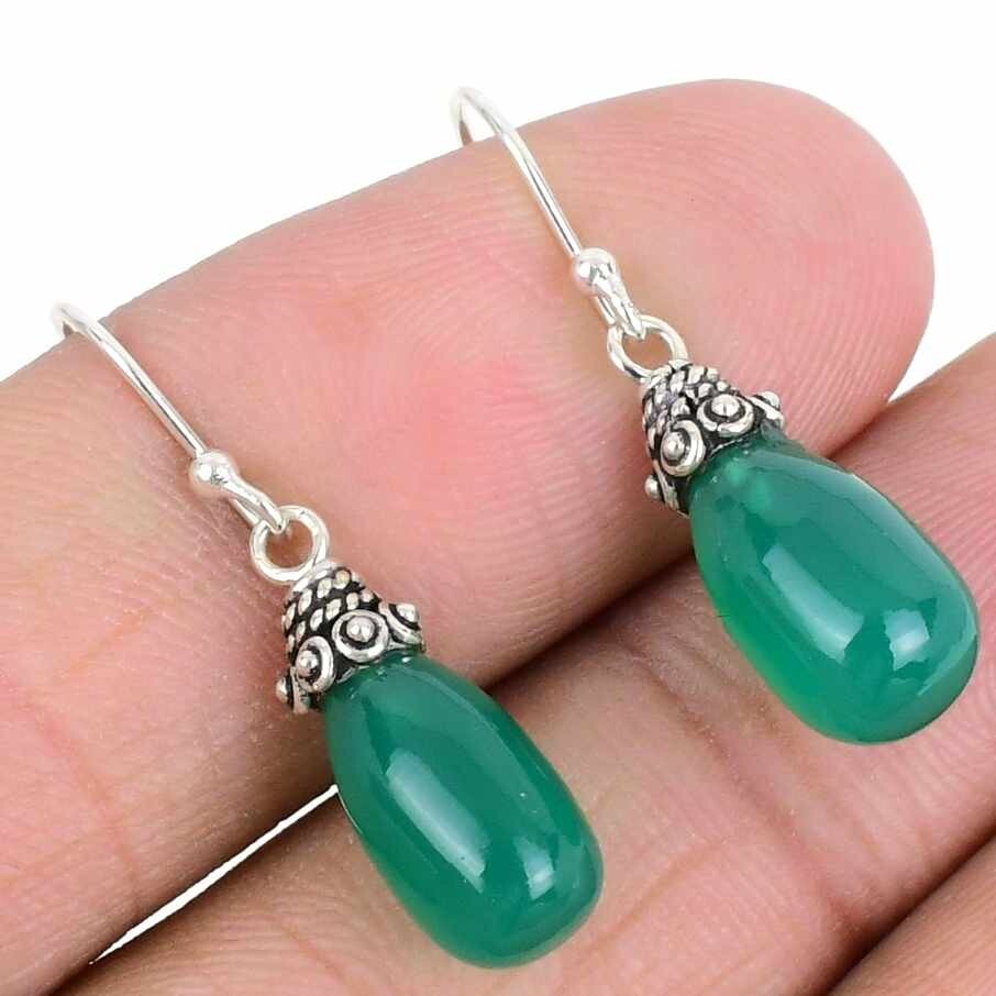 Elegant Natural Green Onyx New Drop Dangle Artisan in 925 St