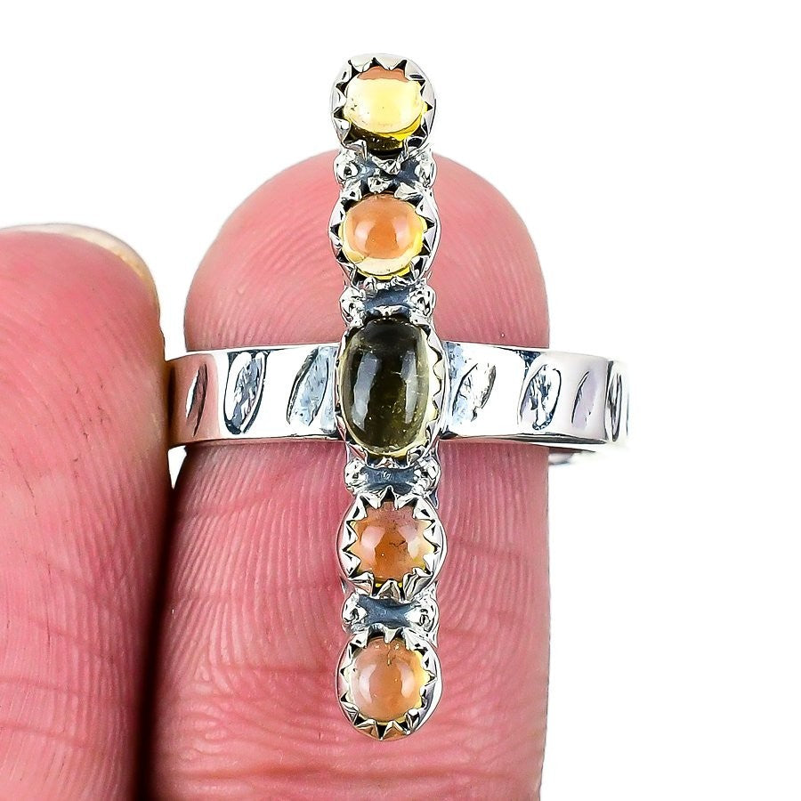 Natural Green Tourmaline 925 Solid Silver Cluster Artisan Ring Jewelry Size 8