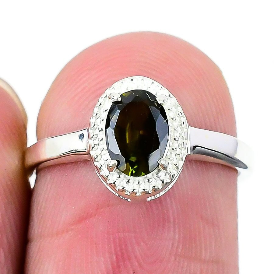 Natural Green Tourmaline 925 Solid Silver Handcrafted Statement Wife Ring US 6