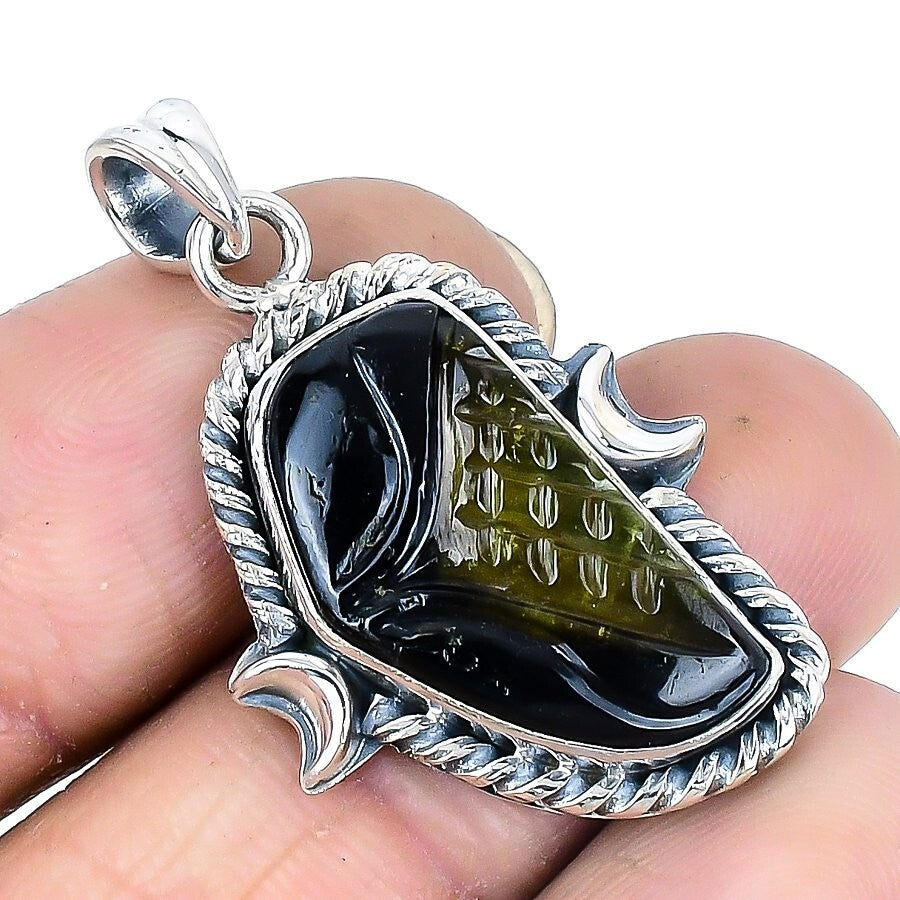 Natural Green Tourmaline Carving Trendy Pendant Jewelry Solid Sterling Silver