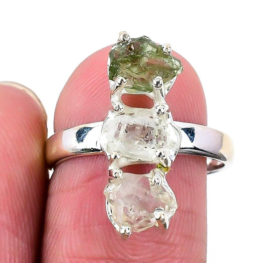 Natural Herkimer Daimond 925 Sterling Silver Statement Artisan Ring Jewelry US 8