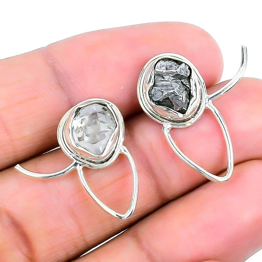 Natural Herkimer Daimond Sterling Silver Artisan Boho Dangling Earrings Jewelry