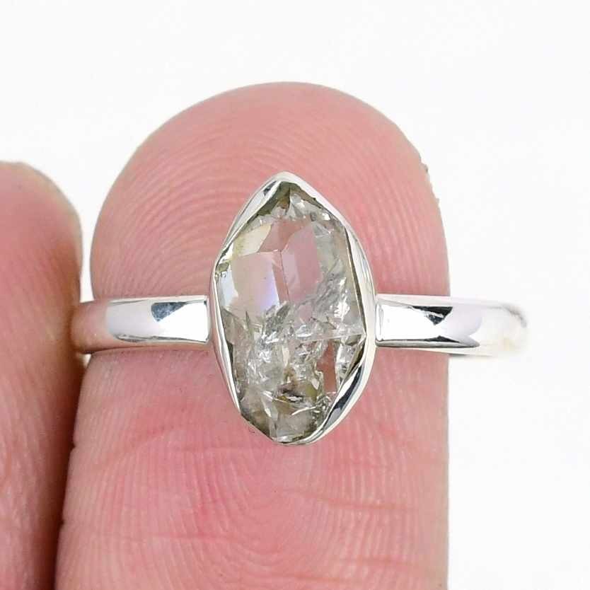 Natural Herkimer Diamond New Cluster Daughter Gift Ring Size 8.5 Sterling Silver