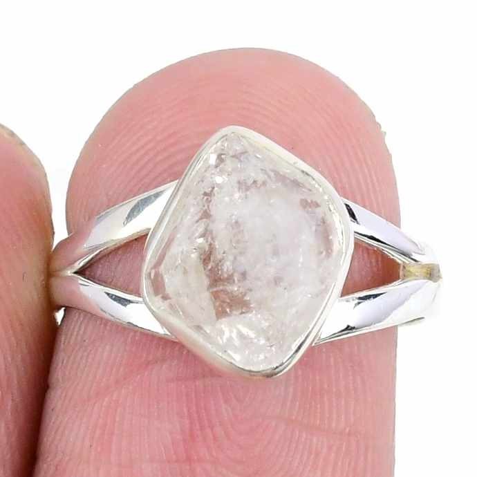 Natural Herkimer Diamond Solid Sterling Silver Cluster Wife Ring Jewelry Size 7