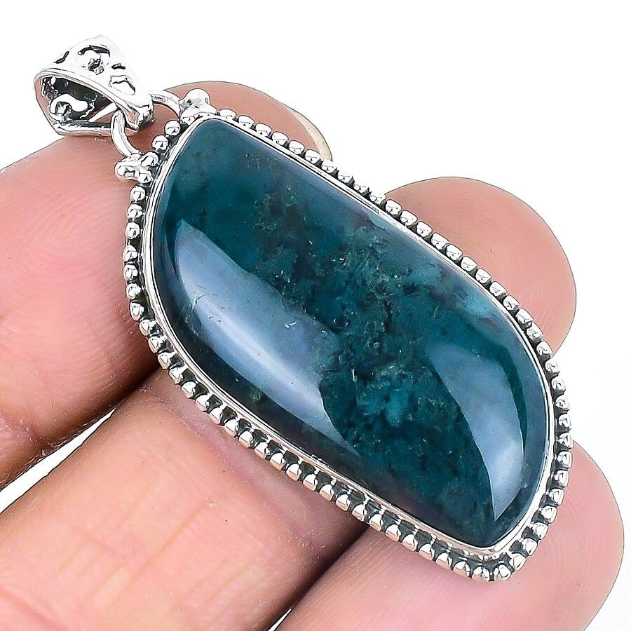 Natural Indian Moss Agate 925 Solid Silver Daughter Handcrafted Pendant Jewelry