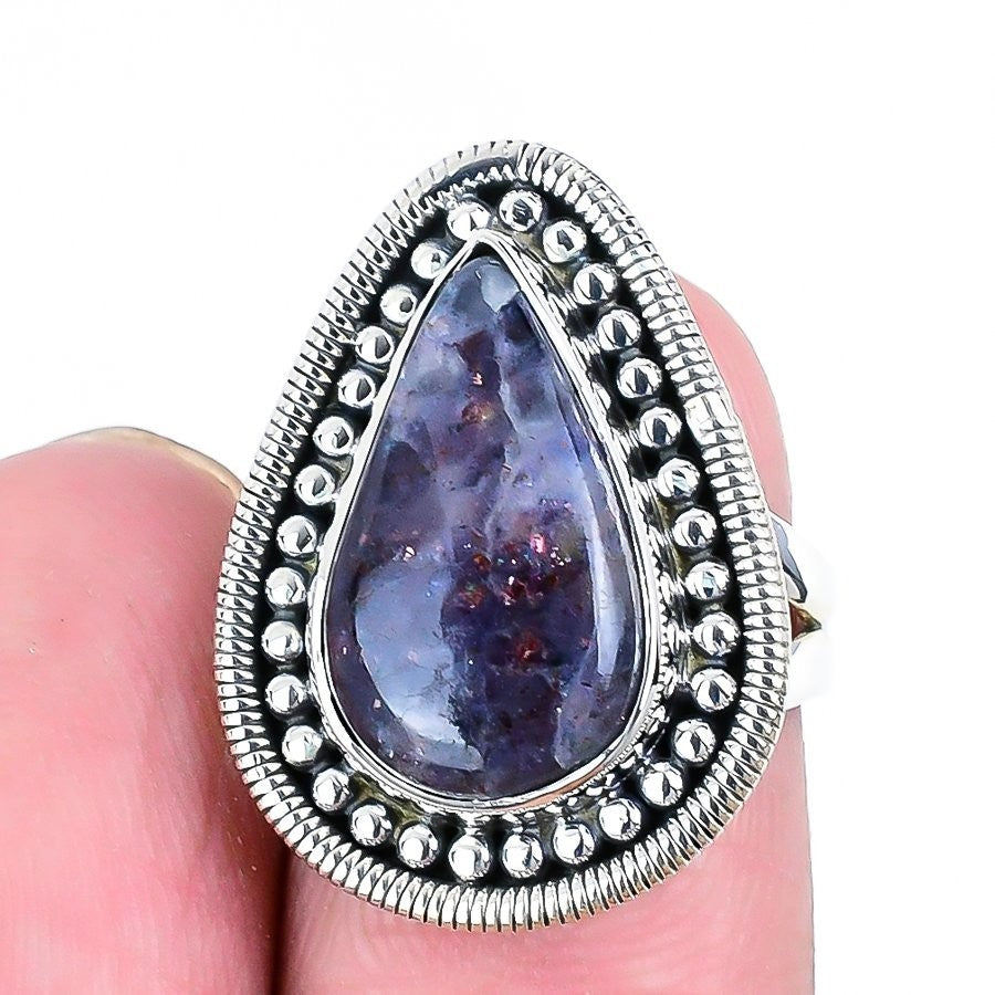 Natural Iolite Sunstone 925 Silver Birthday Cluster Mother Ring Jewelry Size 6