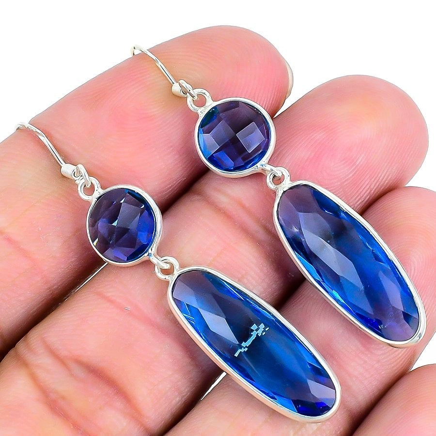 Natural Iolite Treated Glass 925 Sterling Silver Birthday Drop Dangle Earrings