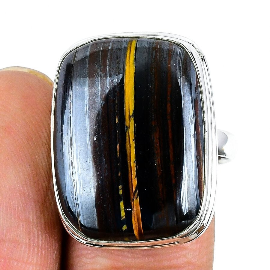 Natural Iron Tiger Eye Bezel Handmade Statement Ring Jewelry 925 Sterling Silver