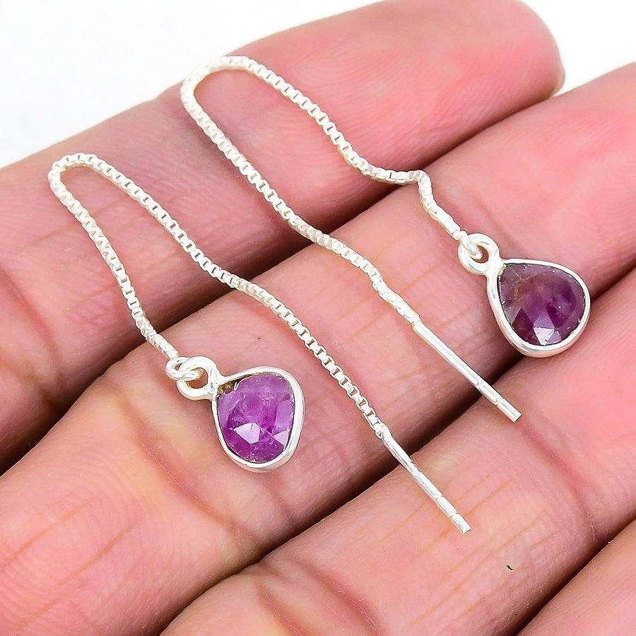 Natural Kashmir Red Ruby 925 Silver Drop Dangle Daughter Hook Earrings Jewelry