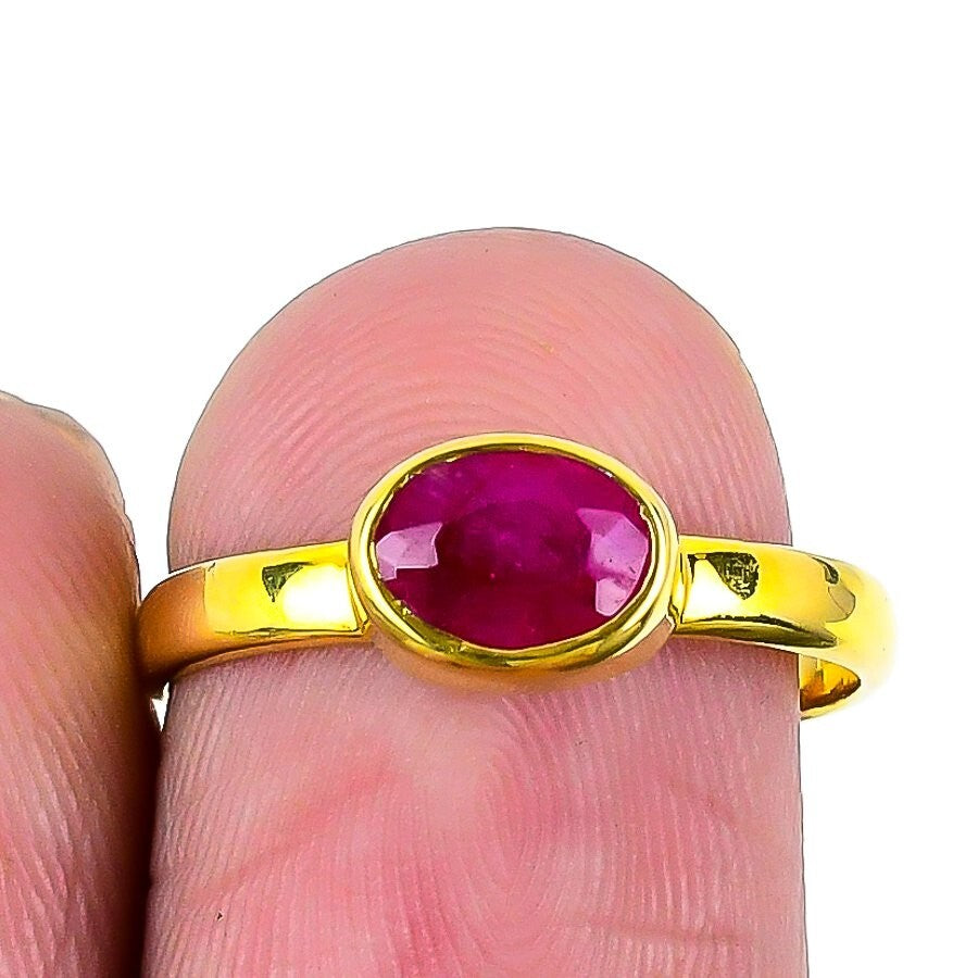 Natural Kashmir Red Ruby 925 Solid Silver Boho Daughter Statement Ring Size 8