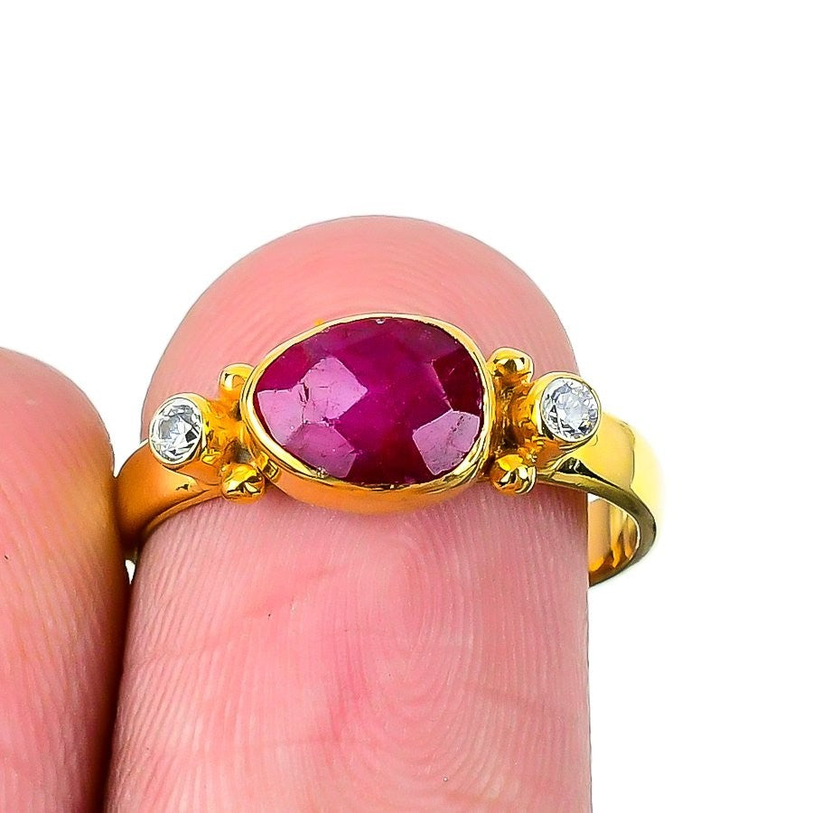 Natural Kashmir Red Ruby Solid Silver Statement Daughters Day Ring Jewelry US 8