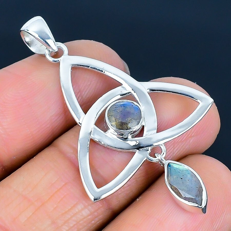 Natural LabrAdjustableorite Faceted Solid Silver Birthday Ethnic Pendant Jewelry