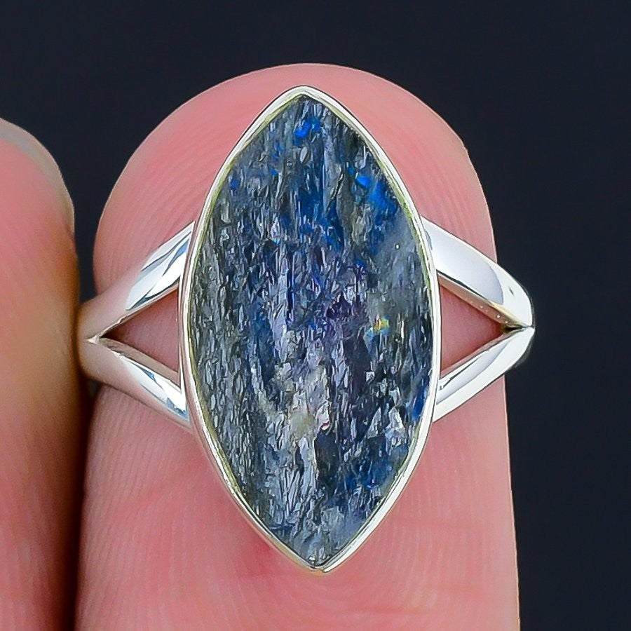 Natural Labradorite druzy Solid Sterling Silver Wife Statement Ring Jewelry US 6