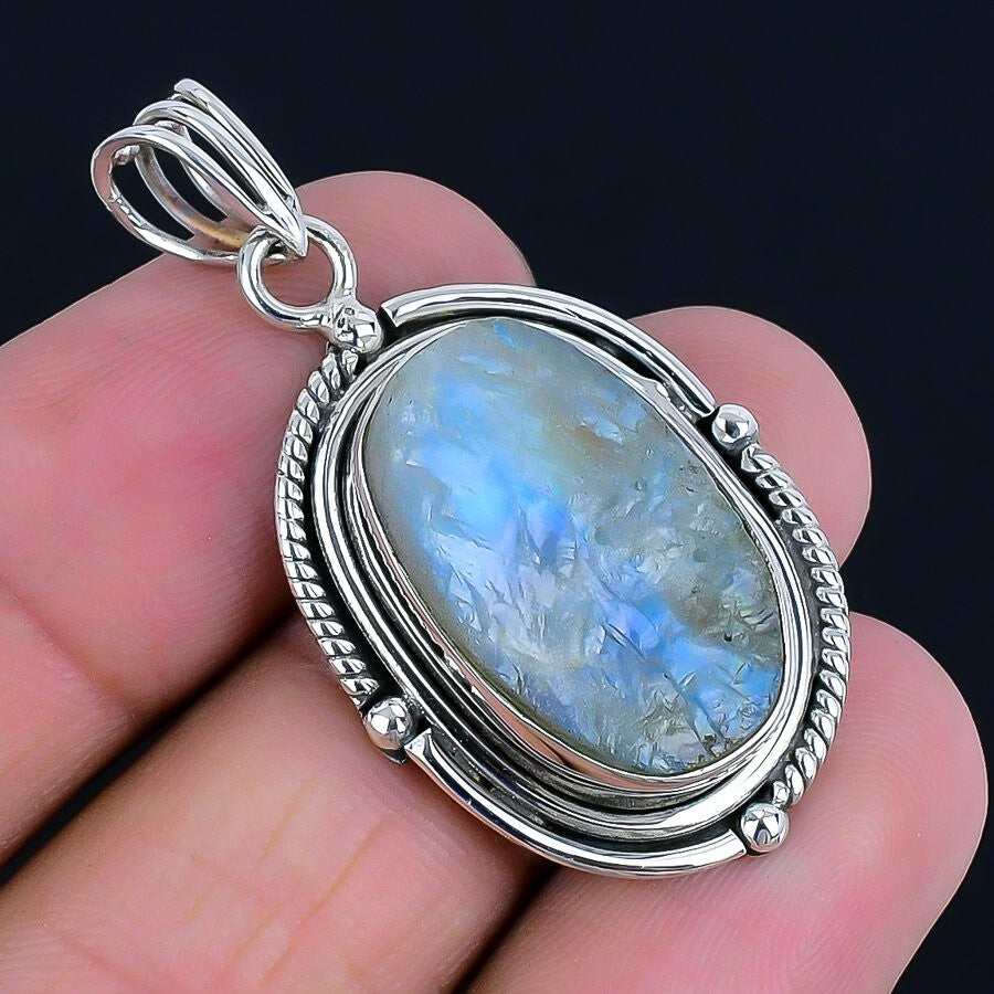 Natural Labradorite Rough Solid Silver Engagement Wife Christmas Pendant Jewelry