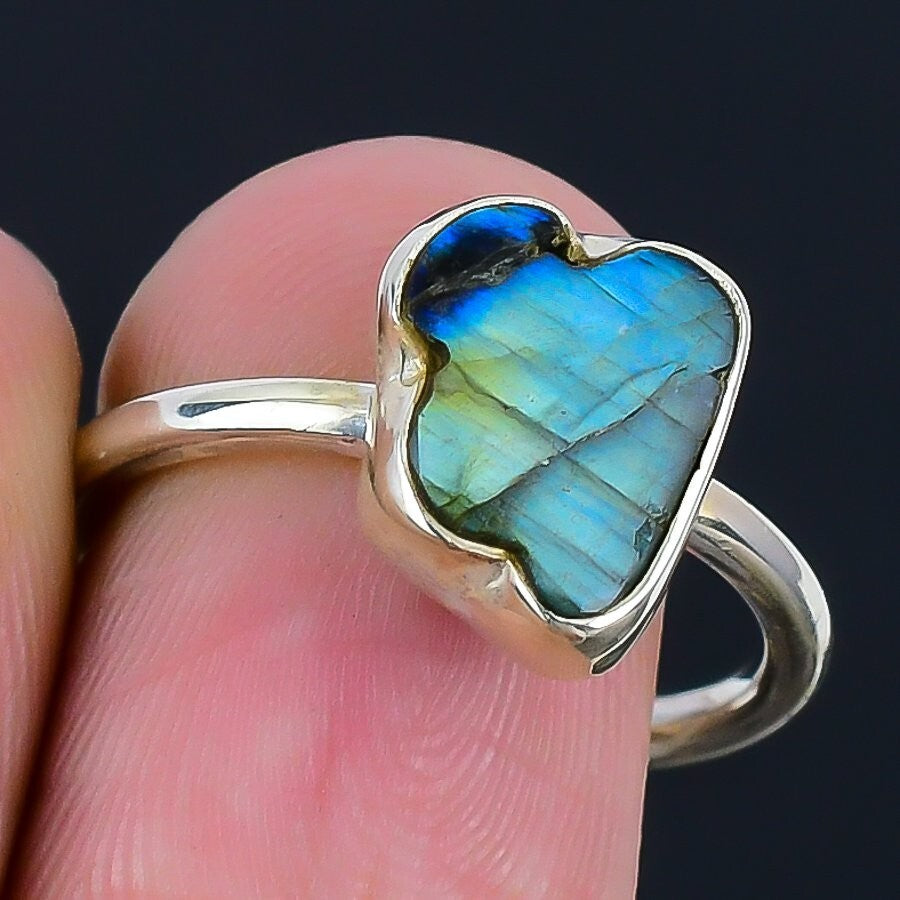 Natural Labradorite Rough Solid Sterling Silver Cluster Ring Jewelry Size 8.5