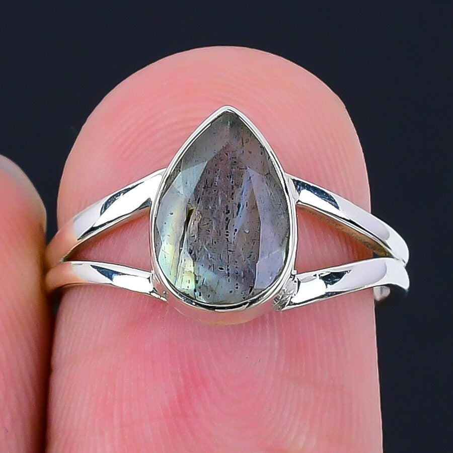 Natural Labradorite Sister Statement Anniversary Ring 925 Sterling Silver US 7