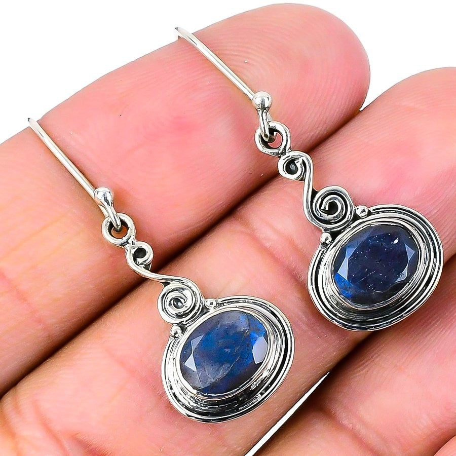 Natural Labradorite Solid Silver Dangle Third Eye Chakra Birthday Hook Earrings