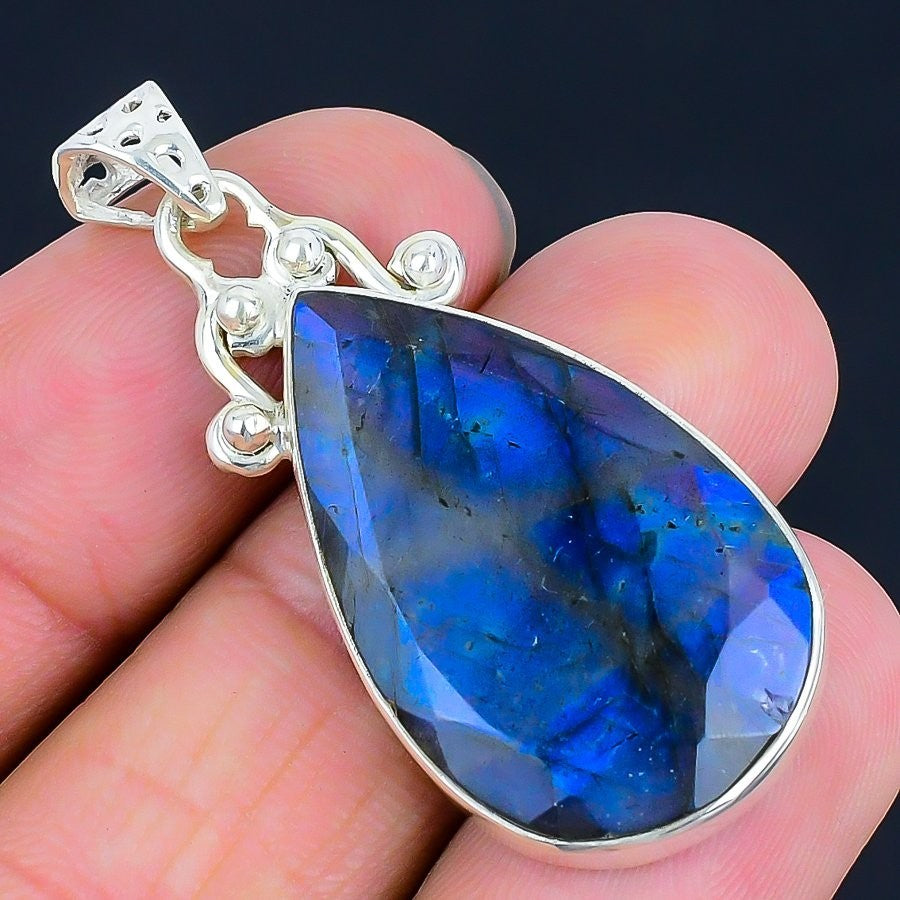 Natural Labradorite Solid Silver Engagement Bezel Unique Trendy Pendant Jewelry