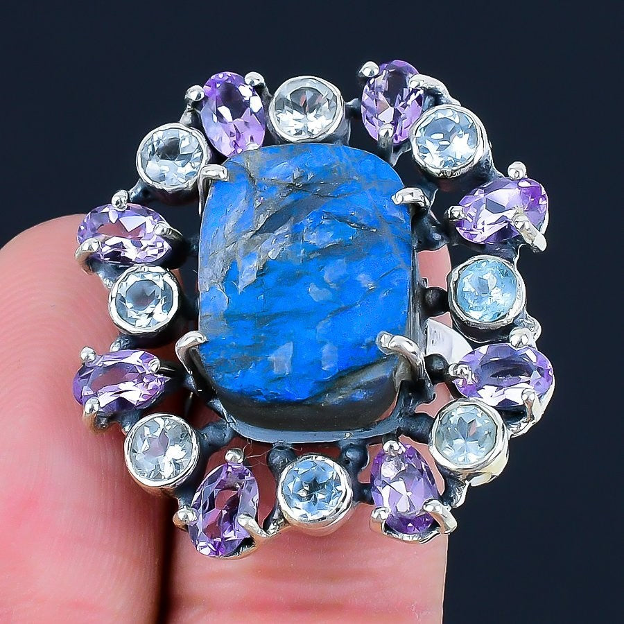 Natural Labradorite Solid Sterling Silver Statement Anniversary New Ring Size 7